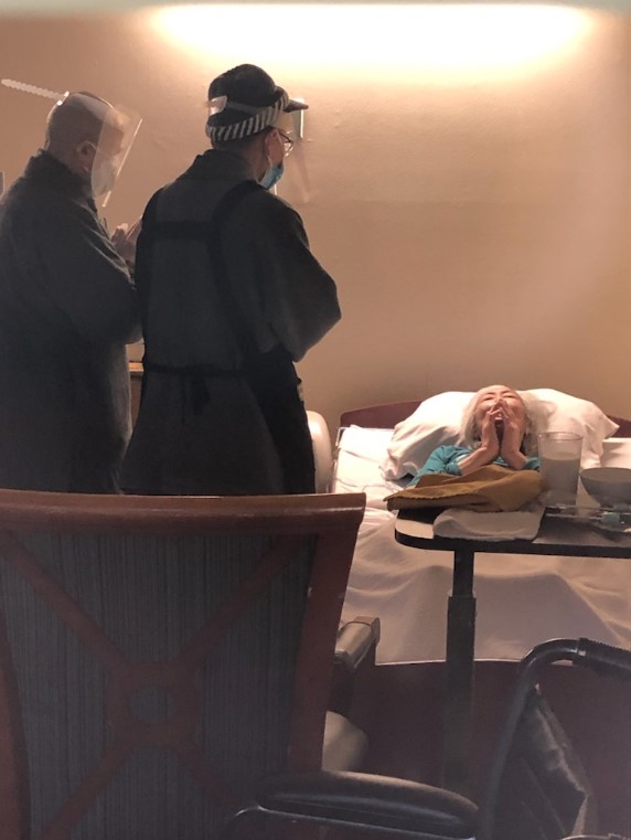 Each family member got an opportunity, two at a time, to go to her room after her passing, and say goodbye. Jack and I went in together after they checked us in.