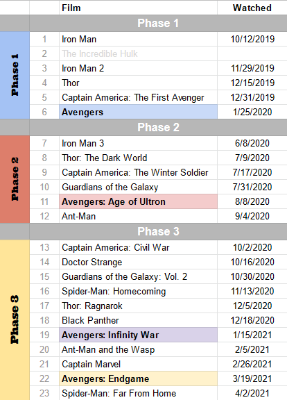 When we originally scheduled how we’ll traverse the three phases, we didn’t imagine the kids would’ve finished them all within two years. But then COVID-19 happened. With all the extra time indoors, they got an accelerated path through Harry Potter and the MCU.