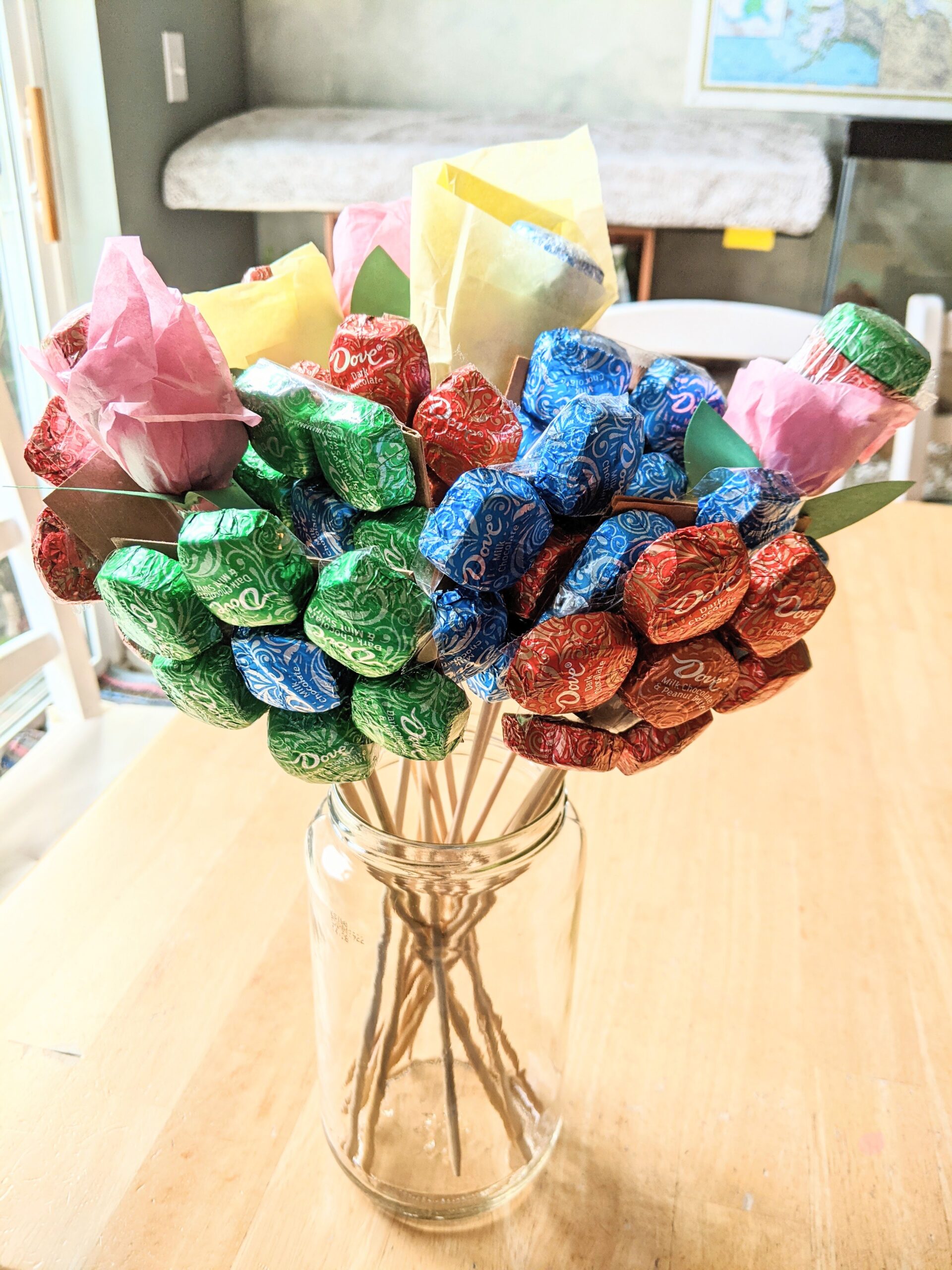 Jenni, Kadie, and I made a Dove chocolate bouquet for Mother’s Day.