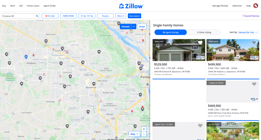 I use two services to find houses: Zillow and Realtor. I’ve tried Redfin, but I’ve found their filtering tools to be less robust, but their school neighborhood filtering is better.