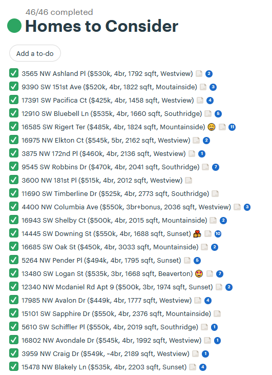 Then all the comments about the to-do item are either our family, realtor, or us giving thoughts on the house. It keeps all of it organized.