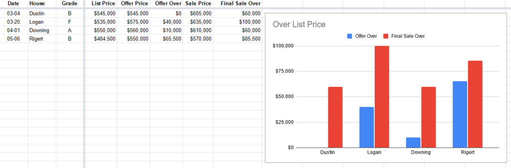 And since I have a record of all the houses we’ve considered, I am able to go back and check on houses after they’ve sold to see what the winning bid was. It’s been eye-opening to see how much higher we need to offer for the popular houses.