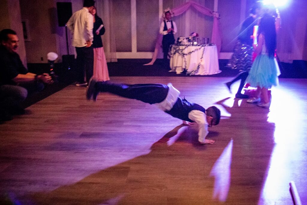 Chris and Emily performed their first dance, which included a lift, and then there’s Jack and Rachel, leading the way with line dances. Violet got her cousin Vienna dancing and Bruce and Grayson had lightsaber duels with the glow sticks.