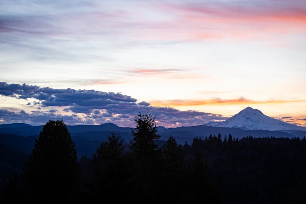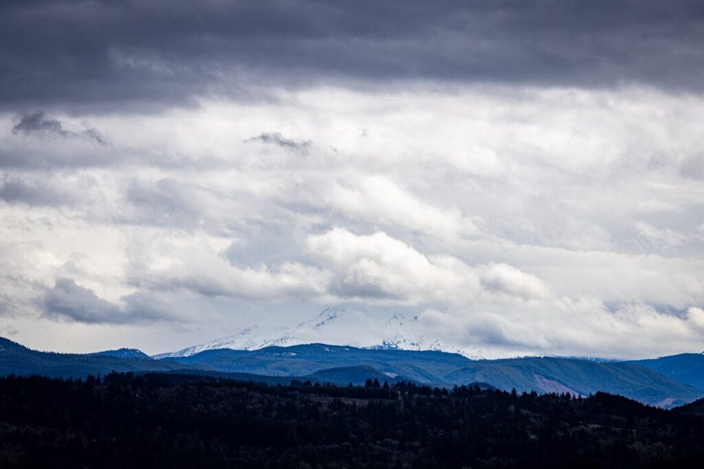 The clouds stayed after the storm and obscured our view of Mount Hood for our last day. We stopped by a hidden viewpoint in Sandy, Oregon, called Jonsrud Viewpoint. We’ll have to return on a different day when we can see the mountain as well as the valley below.