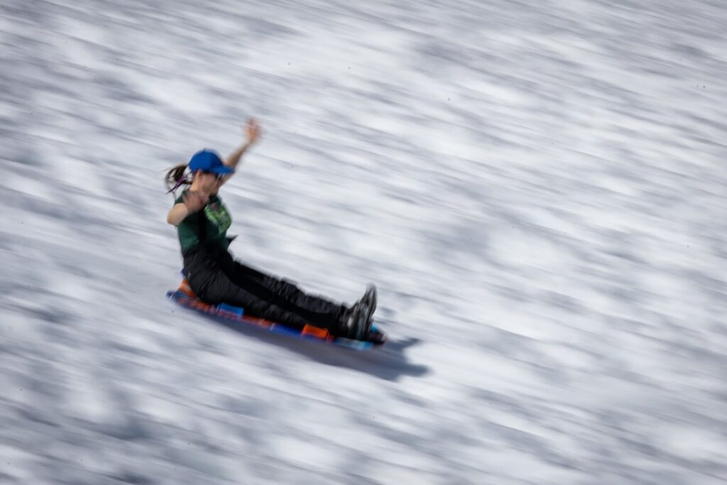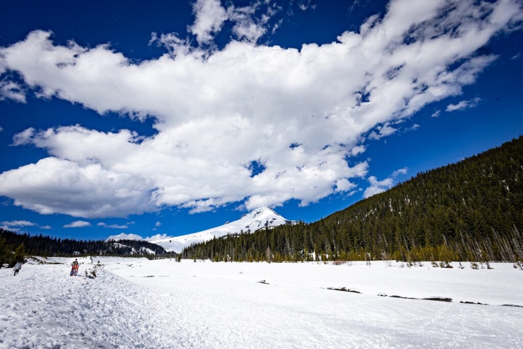 Before the severe thunderstorm arrived, we made our last stop at White-Sno Park West so that we could sled down the hills. I love this sledding area because the clouds provide the best timelapse with Mount Hood.