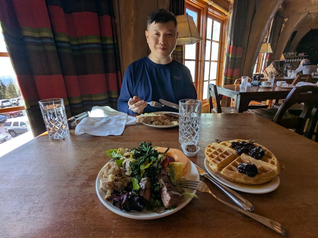 We stopped at Timberline Lodge to learn about the historic location and those who championed it. The buffet was delicious and knocked me out on a food coma for the afternoon. Jenni strapped on the snowshoes and hiked around the scenery.