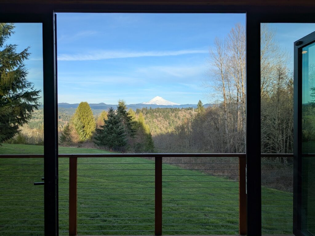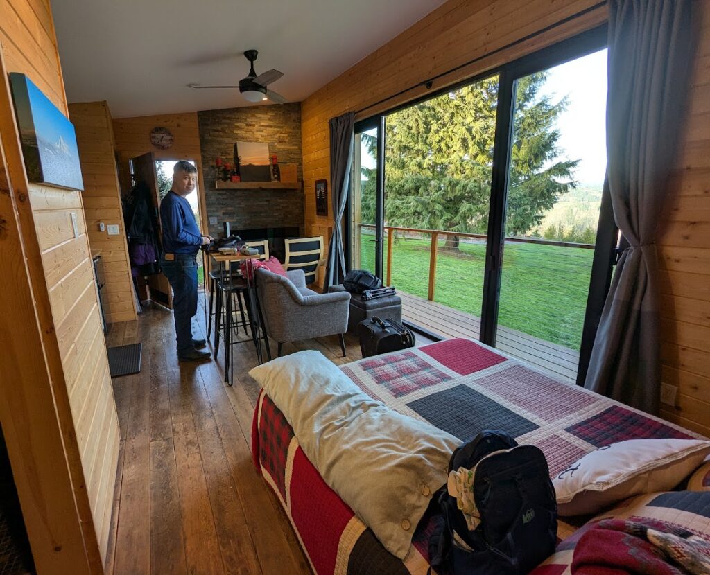 We stayed nearby at an AirBnb with an incredible view of Mount Hood from the window doors. The cute tiny home allowed us to have the amenities of a home at the size of a hotel room (and below the cost). After we arrived, we spent an hour watching the sunset on the loveseat.