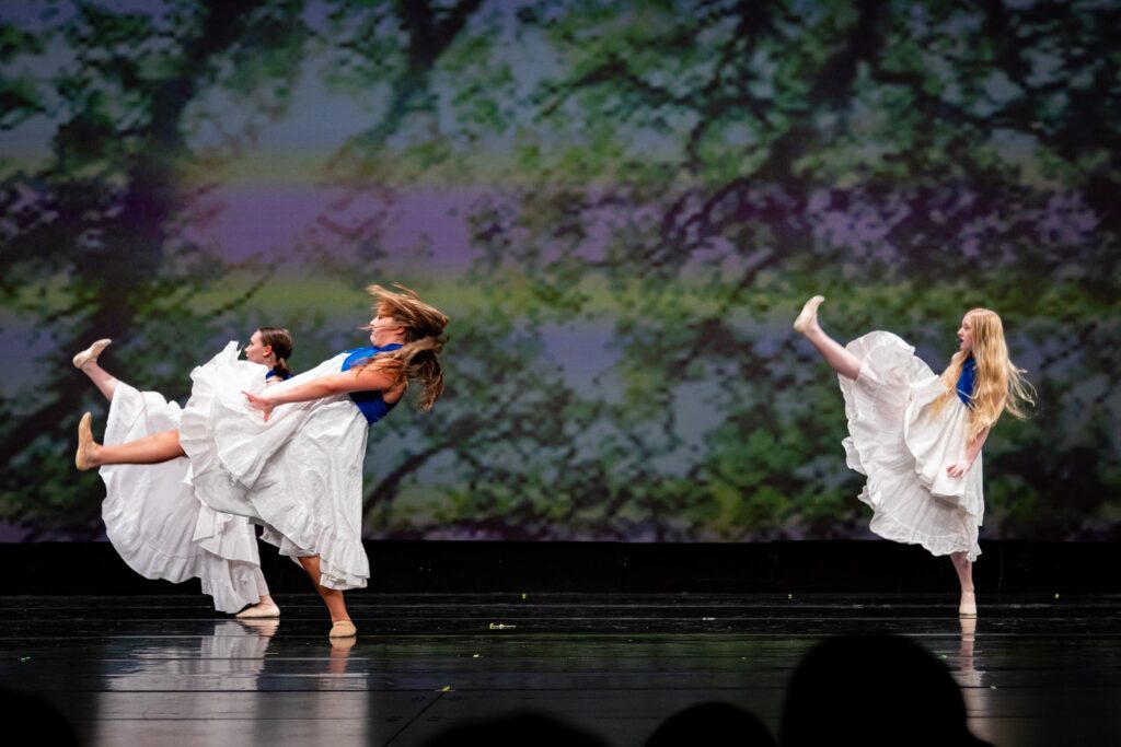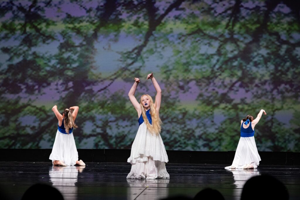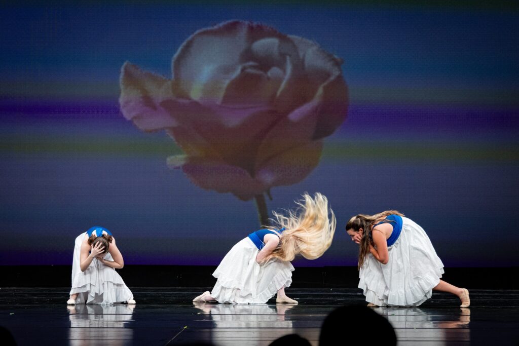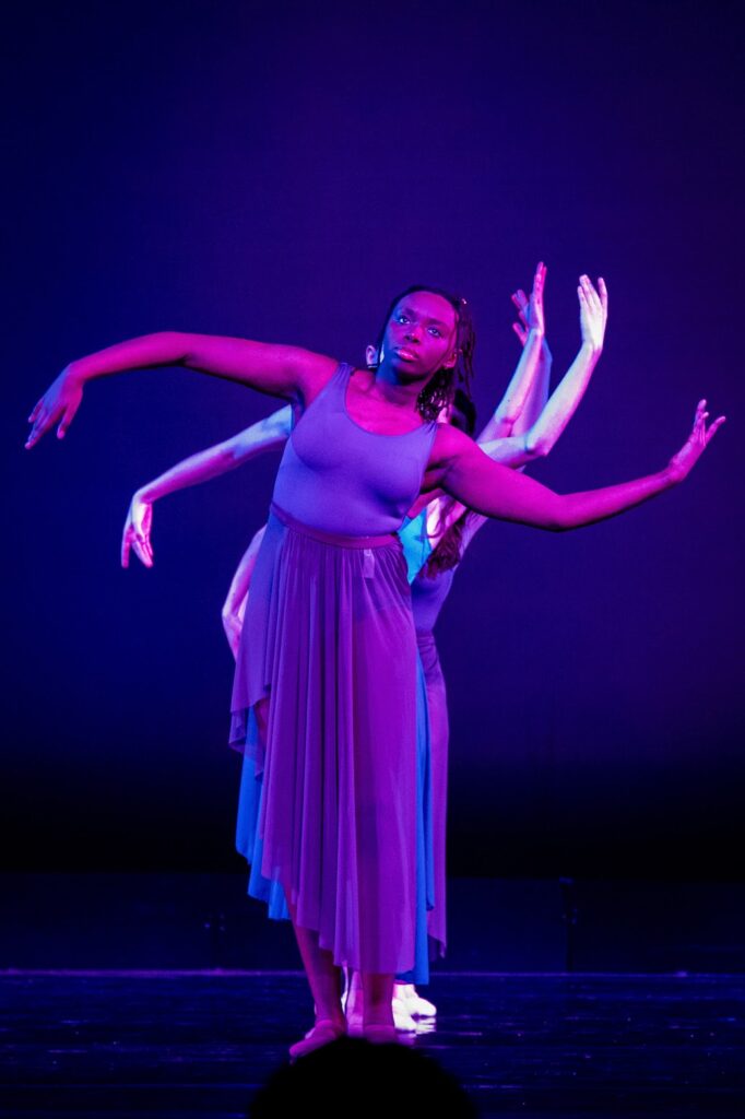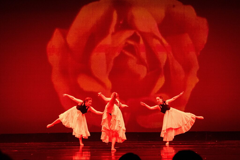 I personally enjoyed the “hair-ography” in a piece that Annabelle choreographed with two other dancers and the use of the giant screen and lighting to set the mood of several pieces.